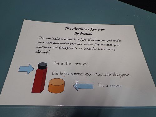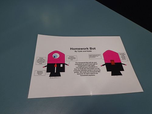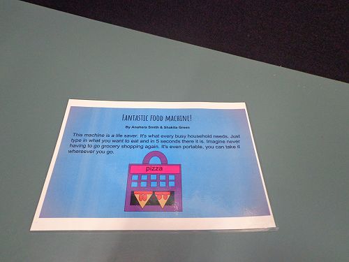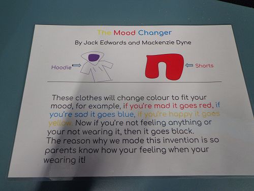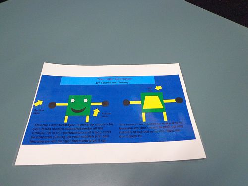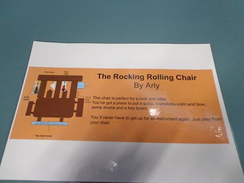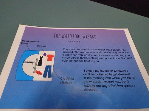 Our class came up with inventions of things we thought would be useful to us. We created our inventions along with an information sheet about how it worked, why we designed it and an advertisement.