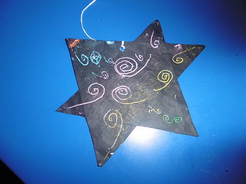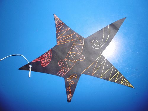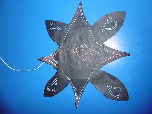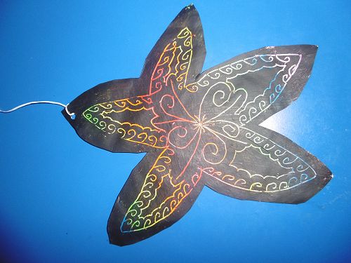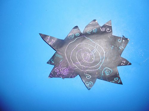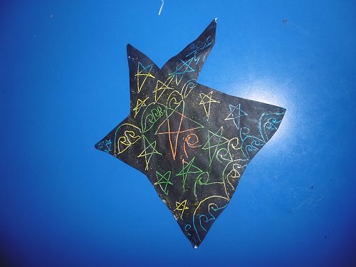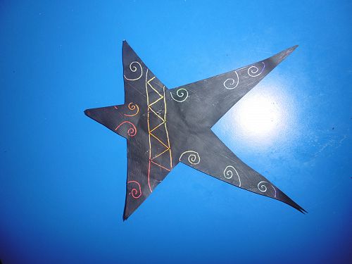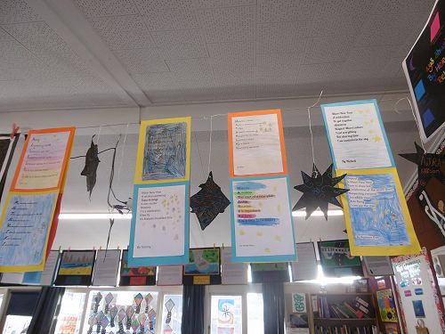 Room 21 wrote acrostic poems about Matariki with Mrs Cleverley and then created stars using the sgraffito art method with Whaea Justine. They cut out stars, coloured them with crayon and painted over the top of them using black paint and then scratched out designs using their pencils.