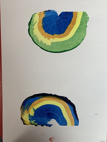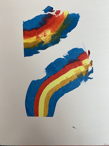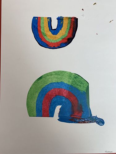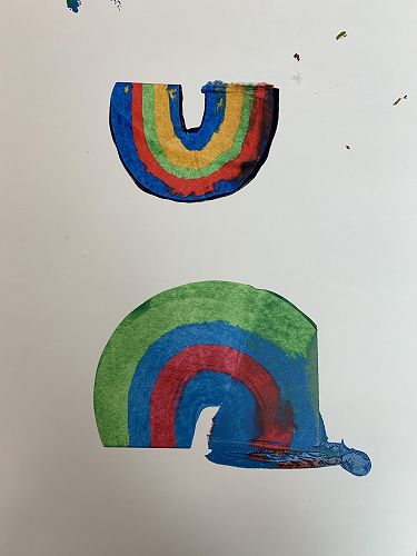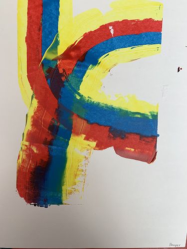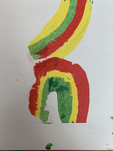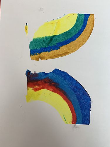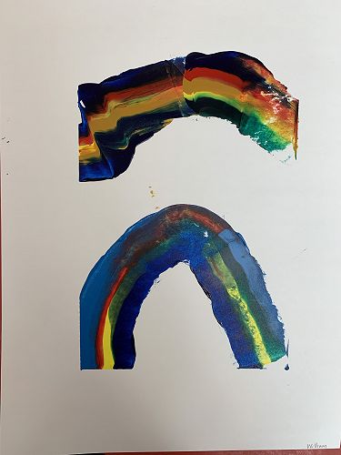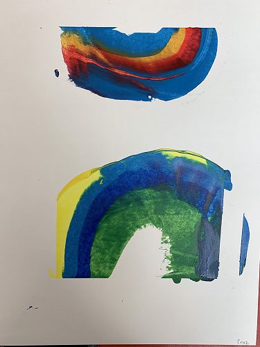 Room 3 explored different ways to create art using acrylic paints and a scraper. Taking advantage of the fluidity of acrylic paints, the children used the scraper to create lines and curves on their pieces of paper. Inspired by the artist Amber Vittoria, some children used the shapes and curves of rainbows to create their art, while others were dictated by where the scraper went. The children were amazed by the simple lines and the effect left after the paint was scraped off the paper.