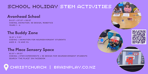 Brain Play - We’re excited to be running a range of STEM events in the school holidays. These activities are aimed at a range of ages, and include events specifically catered to neurodivergent students. Coding, 3D design, etc. See info attached.