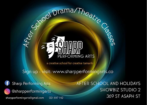 Sharp Performing Arts - After-school and holiday drama and theatre classes. Sharp Performing Arts runs a vibrant after-school option for tamariki aged 8-12 (Years 4-8). Classes for Term 3 are starting soon and will be held at SHOWBIZ Christchurch.