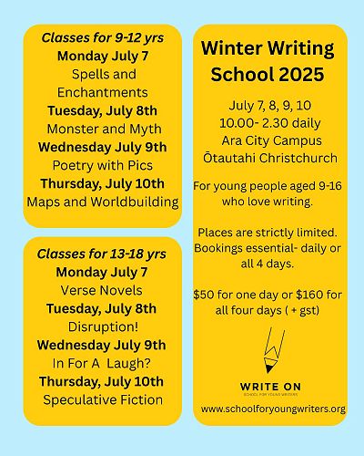 Write On School for Young Writers - School holiday writing classes for 9 - 18 year olds. See info attached.