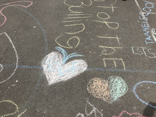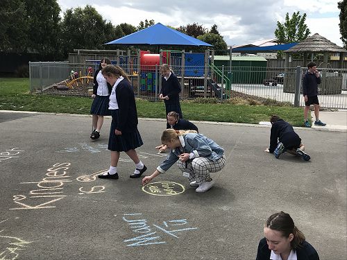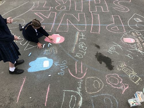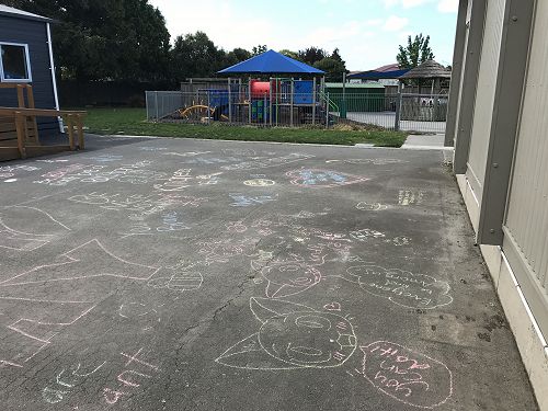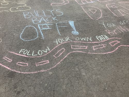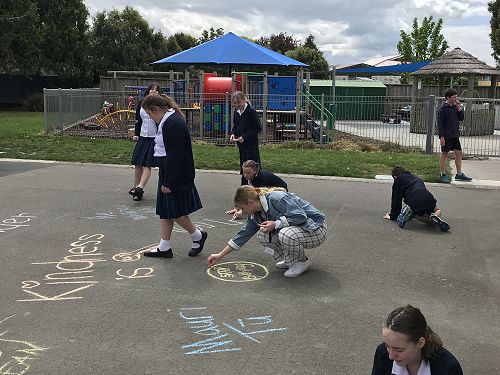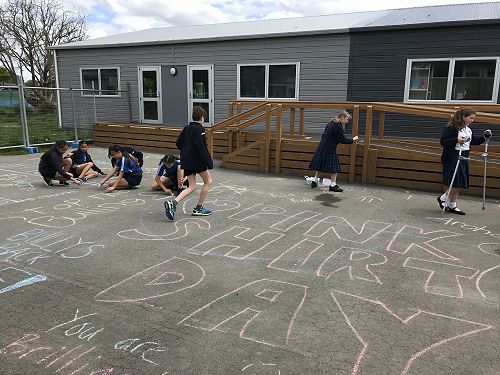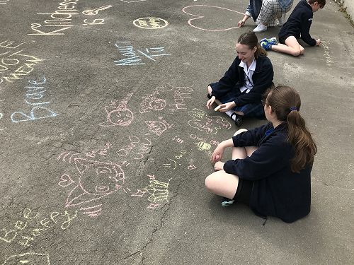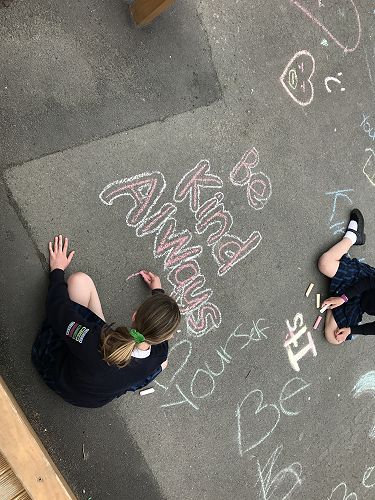 In the spirit of this important kaupapa, Breens students collaborated to create a variety of positive messages and images using sidewalk chalk.
