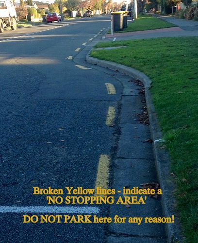 - 'No stopping' lines (broken yellow lines) marked within 1 metre of the edge of the road, which are clearly marked near our school crossing & driveway. Parking this close to our patrolled crossing is so dangerous as the students on patrol do not have clear sight of the cars travelling down Breens Road.