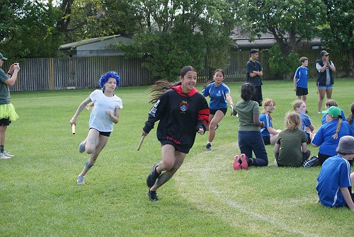 All students were looking vibrant wearing their house colours. Māpuna in Silver, Hīrere in Blue and Hīwai in Green. Every team had their own chant and all the teams had a competition to see who's chant would get the loudest while watching their teams sprint.