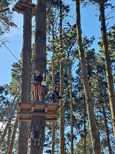 When we arrived we had a briefing on how to climb the trees and how to stay safe. We all had to start on the lowest level and then from there we worked our way through the levels. Some of the levels were really high with a lot of different obstacles to navigate, like barrels, swinging logs, rope swings and flying foxes.