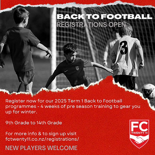 FC Twenty 11 - Register now for our Term 1 Back to Football programmes. 9th grade to 14th grade. See info attached.