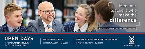 St Andrews College Open Day - Secondary School - 5th March, 9am - 12.00pm. Preparatory & Preschool - 6th March, 11.00am - 12.30pm. See info attached.