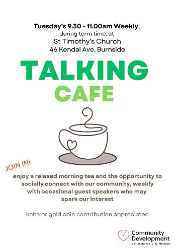 Talking cafe - Tuesday's 9.30am - 11.00am (starting in March), St Timothy's Church, 46 Kendall Ave. Enjoy a relaxed morning tea and socially connect with our community. See info attached.