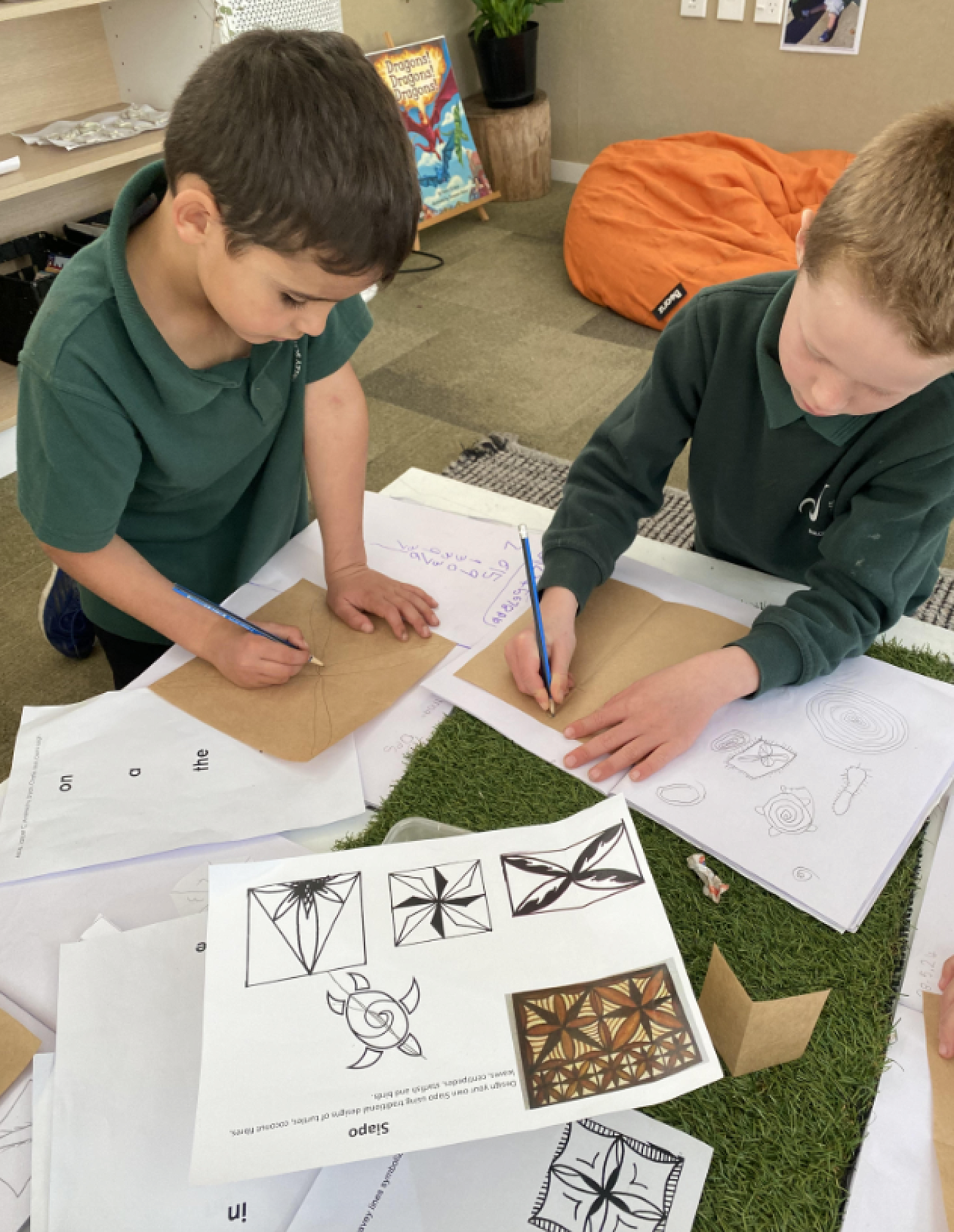 This week in Kākano we have been celebrating le vaiaso o le Gagana Samoa (Samoan Language Week). We were lucky to have some special guests pop in and teach us about aspects of the Samoan culture and language. Mrs Togiaso's Dad shared the story of Sina and the Eel then he opened a coconut for us. Togamau's Aunty (Lavi) showed us some beautiful photos of their recent trip to Samoa, and taught us about the different animals in Samoa. Kymani's Dad (Jeremiah) came in and shared some of his artworks and patterns he uses in his Samoan tattoos. We also had fun drawing our own patterns with Jeremiah. Fa'afetai lava to all of our Kākano 'aiga!