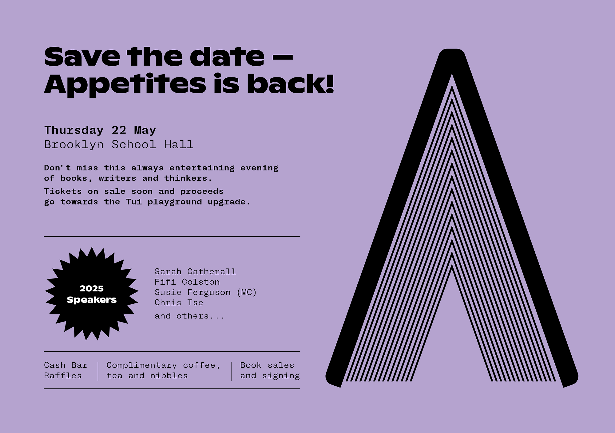 Brooklyn School (Wellington) Board - 12-3141-0139800-00 Code: Eldest child's name Reference: Appetites (including the number of tickets you would like) eg. Appetites X1, AppetitesX 2