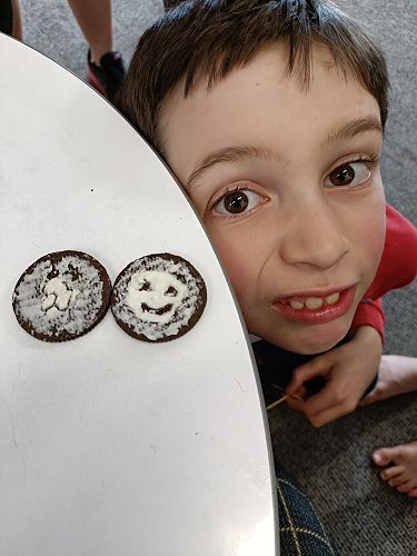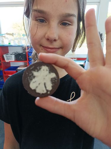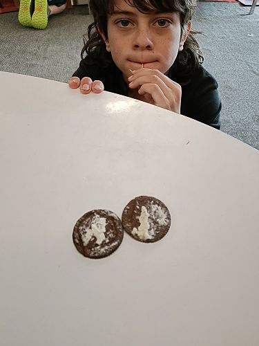 Tī Kōuka and Mataī had the fun experience last week of carving pictures onto the creme of an Oreo biscuit for a fun 'mini' art lesson with Mrs Roxburgh.