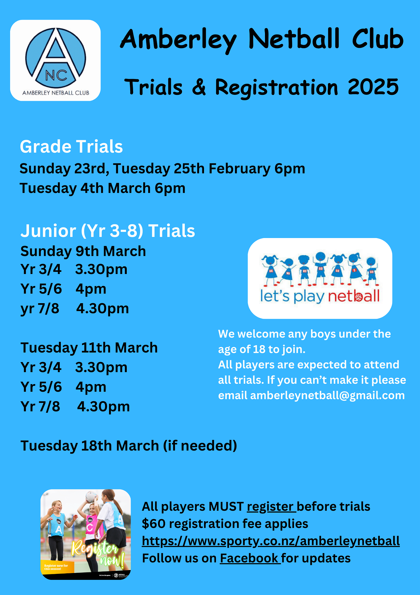 Amberley Netball Trials & Registration Kimberley McKenzie — February 13th, 2025 Click on article to see more info