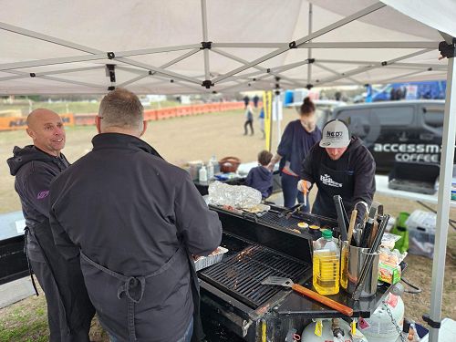 It was an early start on Saturday morning, with the only light coming from the massive white events marquee, luckily situated next to our new food site. It was all hands on deck getting set up - tables, bbq trailers, chillers and everything necessary to ensure a successful day serving food to the punters. Within minutes of the BBQ starting up, we'd sold our first bacon and egg bap and the food continued to flow for the rest of the weekend, ensuring we fundraised in excess of $5000 for our new playground!