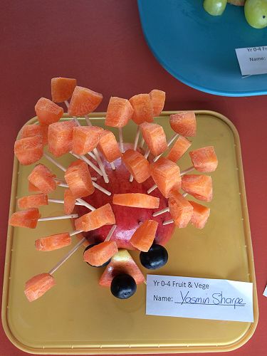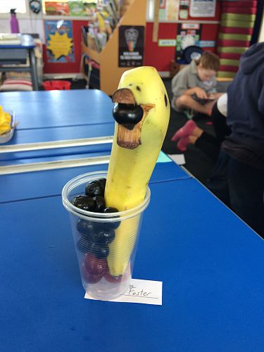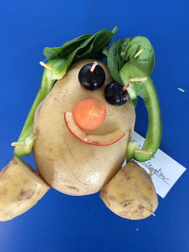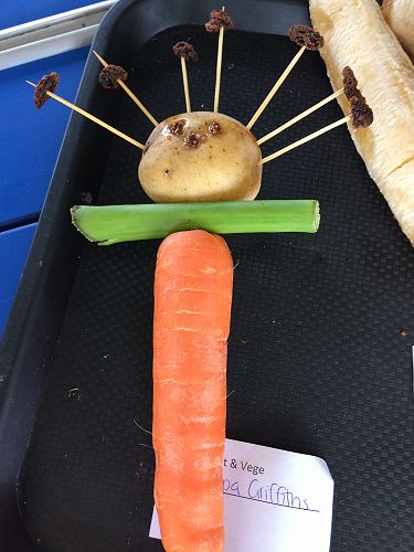 Last Friday we had pet day and I got second place for my potato head, out of fruit and vegetable creations. In the morning we did sand saucers. A sand saucer is when you put sand in a plate and put flowers on the top. There were lots of animals and my dog Alfie was there. He is grey and big. Alfie was very feisty. By Libby Crampton