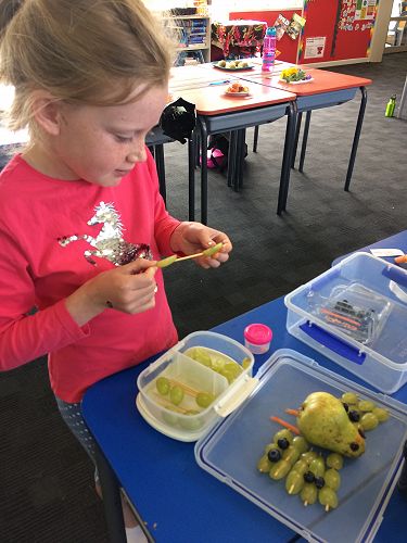 Last Friday on the 30th of October we had pet day and we brought pets and did some fruit and vegetable creations and did sand saucers. Before all of that, we did five activities. After morning tea time we got into groups from 1 to 10. I brought a pet kid. So many people loved patting her because she was curly and warm and comfy. By Lucy Griffiths
