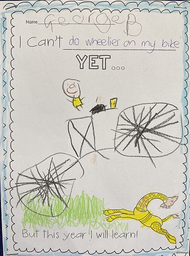 Inspired by Gerald's self belief, determination and resilience Kōwhai tamariki thought about what they couldn't do today, but what they could learn and master this year by showing self belief and a 'can do' attitude. Some of Kōwhai's goals are doing wheelies, riding a bike, doing cartwheels and roller blading.