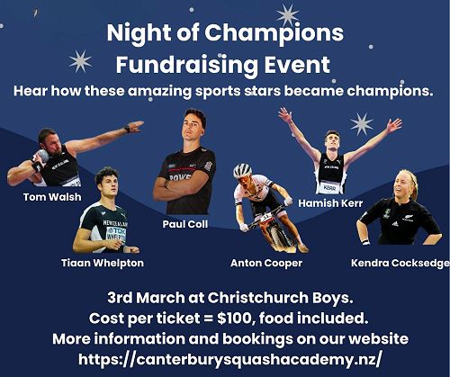The opportunity to hear from champions of this quality doesn't come along every day. Your support for the Canterbury Junior Squash Academy is appreciated.