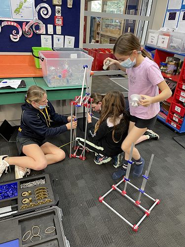 On Friday the 19th August the Broomfield Yr 6-8 competed in a Challenge against each other called EPro8. We had six groups with 4-5 people in each group. We had an hour to complete several challenges of three different activities such as the scarecrow, decision maker and concrete truck. After you had completed a challenge you would press your digital buzzer then music would play from the leaderboard and the judges would then come over and check to make sure you did everything correctly. Once they think you have done the challenge correctly then they will give you a code that will add points to your final score. The team with the most points after the timer runs out wins the challenge.