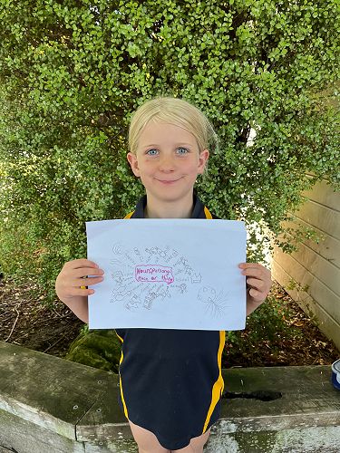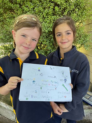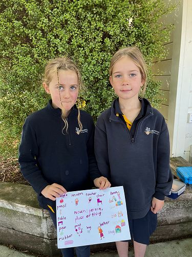 Amelia: My sister is kicking the ball at my house. (N- Sister, V- Kicking)