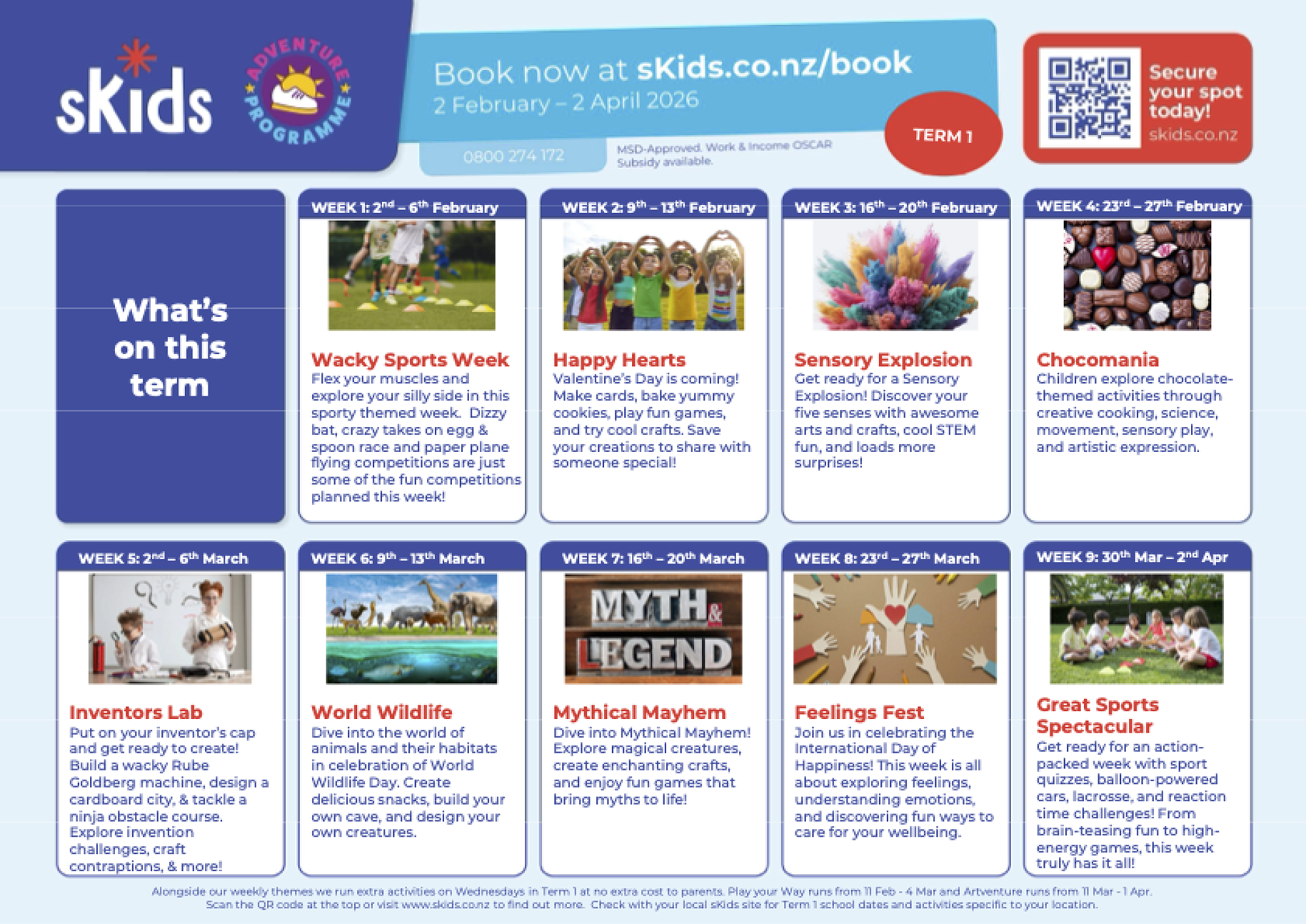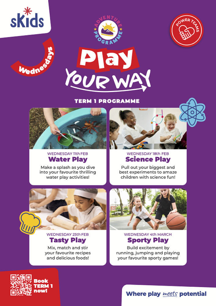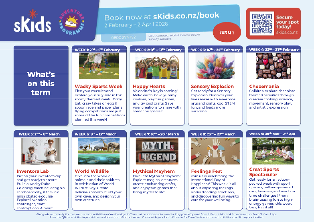 Play Your Way runs every Wednesday in Term 1 from Wed 11 Feb - Wed 4 Mar. Showcase the very best of sKids through the coolest, biggest and most fun Water, Science, Sport and Food activities and experiences! Get ready to play, discover and show the WOW of sKids to tamariki!