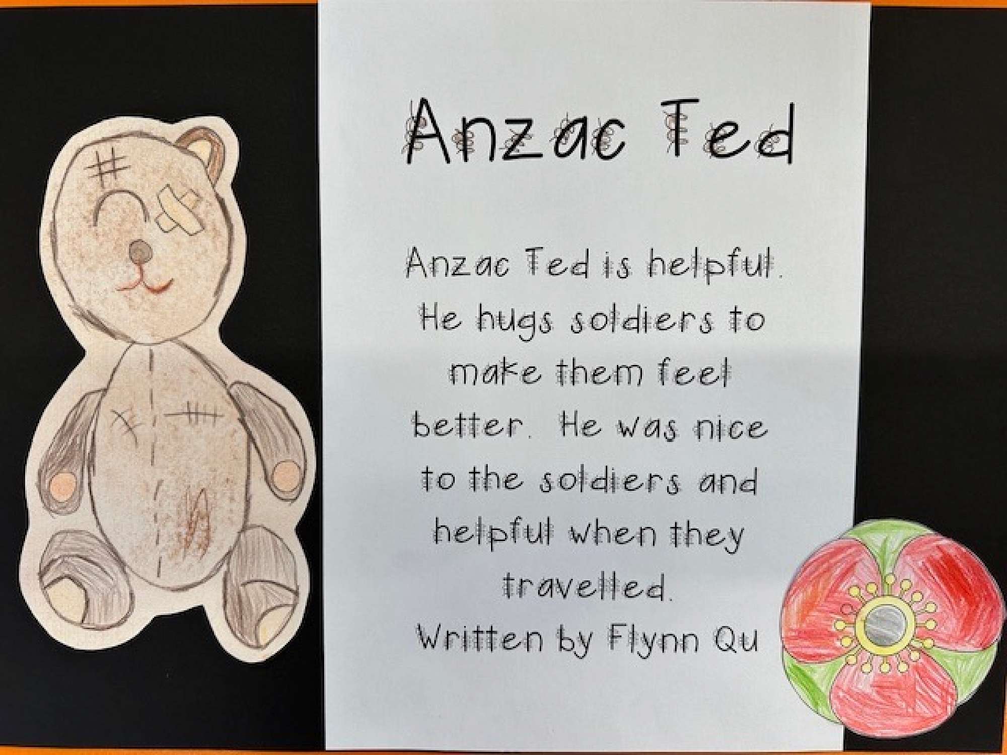 Angela Photo by Moira Rowlands Room 7 read the book Anzac Ted and wrote stories describing him. Moira Rowlands — May 6th, 2024 Tiana — Image by: Moira Rowlands Athena C — Image by: Moira Rowlands Flynn — Image by: Moira Rowlands