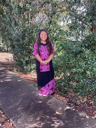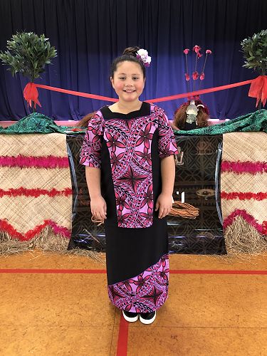 Helena is from Apia which is the capital of Samoa. She hails from the villages of Vaiala, Saina and Tuana'i. Today Helena celebrates her identity with her class/school by wearing her puletasi (dress), sei (flower) and ula (necklace). She is especially proud of learning more about her culture through song and dance and being immersed in church and cultural activities with her aiga (family).