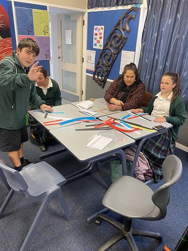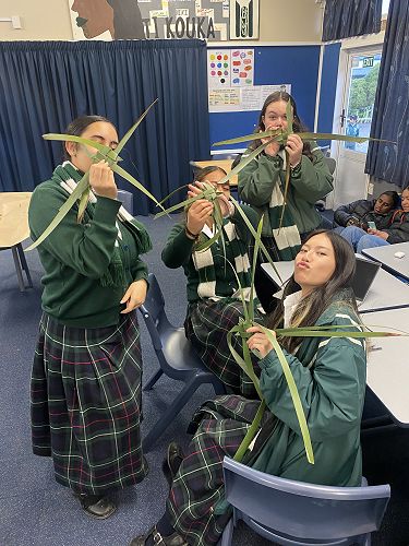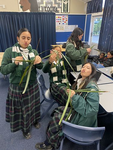 A busy and fulfilling lunch time challenging our brains with some raranga (weaving) with harakeke (flax) and paper was another activity. K1 was full of rangatahi having a go and helping each other, watching videos on the projector, there was some waiata, and then at the end LOTS of cake! Thanks Kōka and Miss Heta for facilitating!