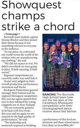 On May 18th Burnside High School competed in the annual Showquest at the Christchurch Town Hall.