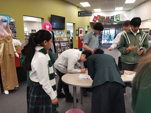 Library Week was linked with National Poetry Day this year. Couplets for Cupcakes was a huge hit again. (Although, it's put me off cupcake frosting forever!) O te aroha e nini ana / Spread the love was the theme and couplets poured in. Friday lunchtime, 250 cupcakes were readily consumed in exchange for a couplet and classes sent piles of couplets of varying poetic quality from each Form time during the week.