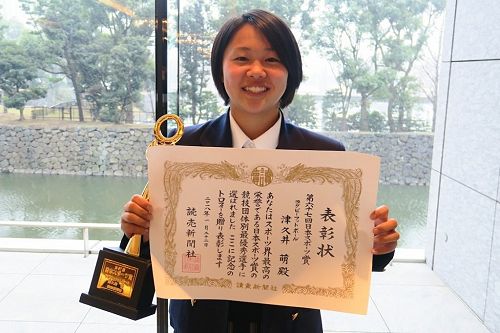 Moe Tsukui wins the individual player award for rugby in the Japan's 67th Sports Awards