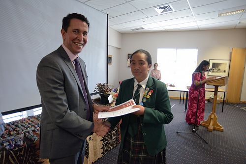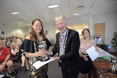 Two students were recognised for special awards. Sofia Tuliau-Walker received the Burnside High School Pasifika Cup for Academic Achievement. Sofia has achieved Excellence in a variety of subjects such as English, Geography, Biology, Mathematics and Outdoor Pursuits. She has been awarded a Maori Entrance Scholarship to Otago University to study Arts and Science. The recipient of the second award, the Burnside High School Pasifika Student of the Year for Service, is Rosebud Fifita. Rosebud has demonstrated outstanding service and commitment to the Burnside Pasifika School Community, inspiring other students for the past three years and has been fully committed to leading the Polyfest Group.