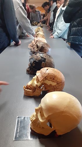 All 13 Biology students took part in the visit as part of the Human Evolution topic. Orana Park has a number of primates which allows students to make observations about their movements and behaviour. The active and aerobatic gibbons put on a show for one group, while another group got to observe the huge gorillas going about their morning routine. Being so close to the gorillas allowed students to see the sheer size of these magnificent creatures. Students also had the opportunity to handle and observe differences in skull features from our ancient ancestors, going back to over 6 million years ago, to skulls of modern humans. The test came when students were asked to place these skulls in order from oldest to most recent. Putting the 20 plus skulls in order was a challenge, but the Orana Park staff were very impressed that one group did this very accurately. This is always a very engaging experience for our students and we would like to thanks Orana Park staff for their support of our students learning.