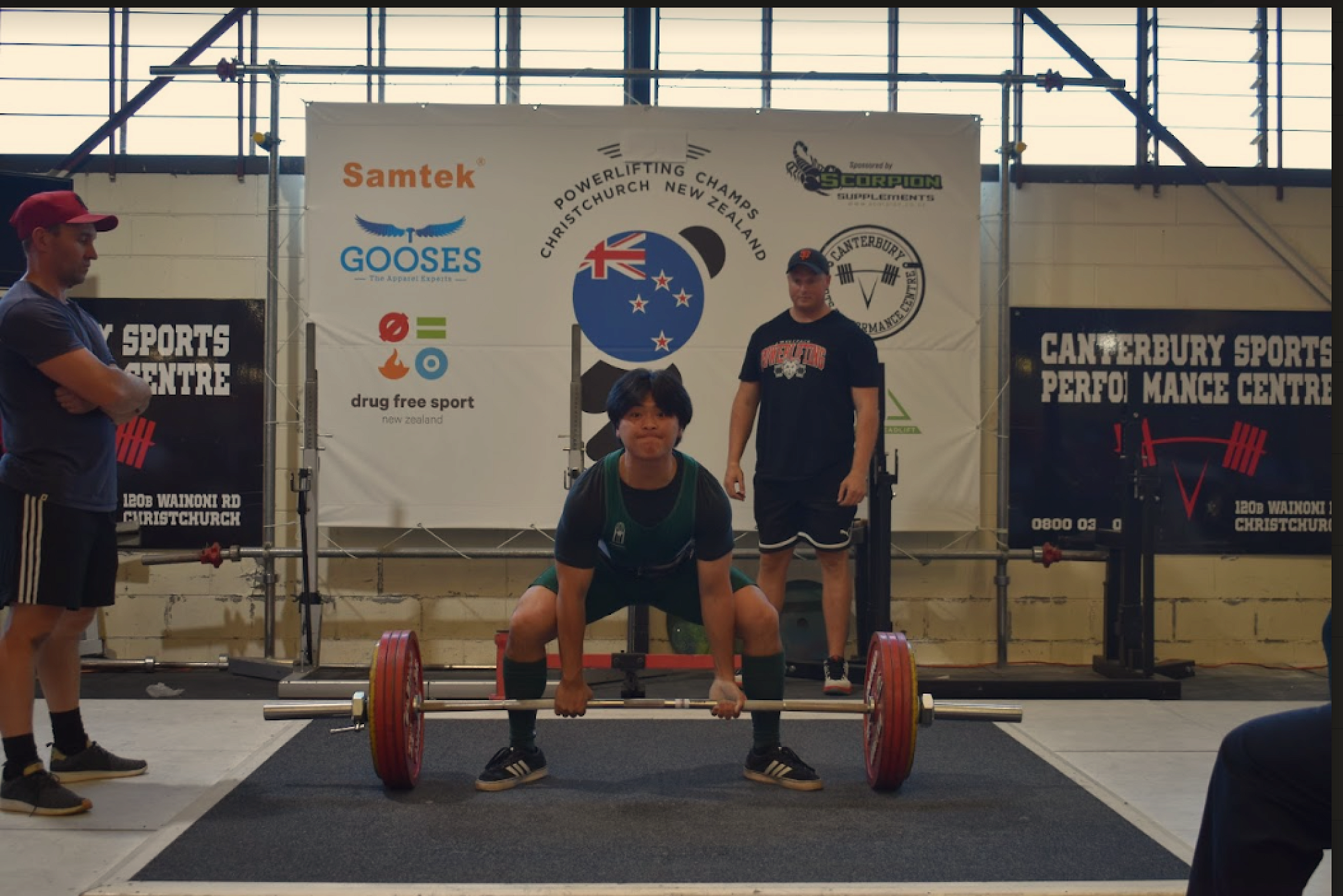 Penny Yang: Squat 130kg, bench 62kg, deadlift 120, 1st in division, 3rd best female junior lifter overall and NZ national squat record (U72kg Youth).