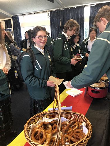 Many enjoyed yummy Brezen, Frankfurter and Amerikaner at the annual Mardi Gras Languages cultural food festival courtesy of Café Berlin.
