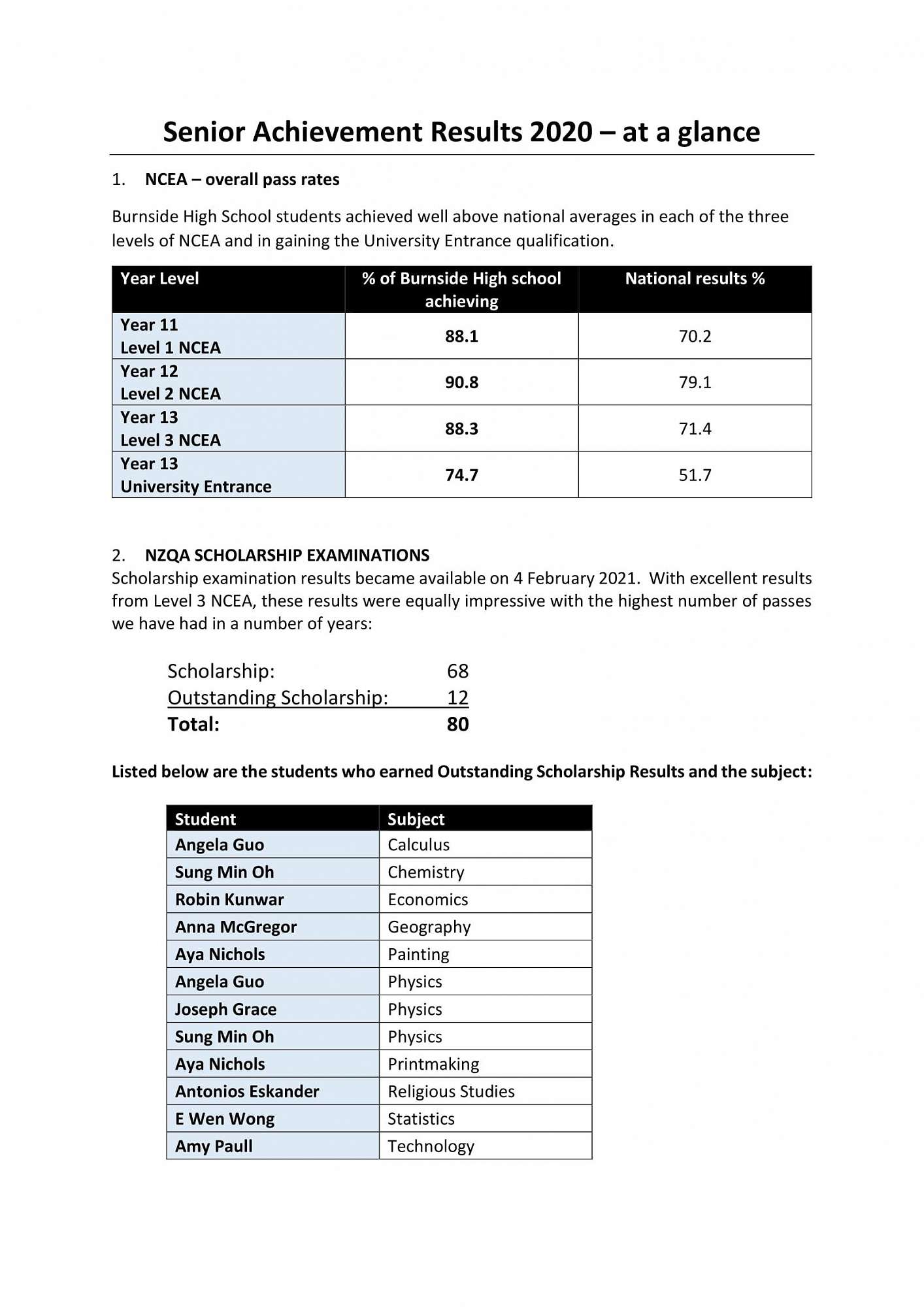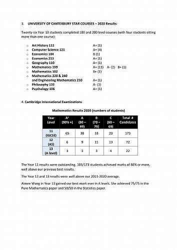 2020 proved an outstanding year for our students and staff in NCEA Levels 1, 2 and 3, Scholarships, Cambridge Mathematics, and in University of Canterbury STAR courses.