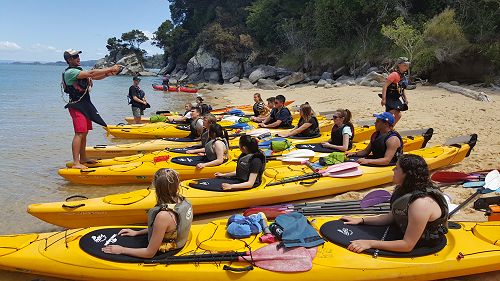 We split into 2 groups with Group 1 walking and Group 2 kayaking first. After lunch we swap and head back to Marahau