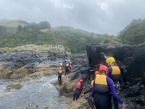 On a wet March morning the Year 12 Physical Education classes got themselves out of bed at dawn and made their way to the beautiful Wainui. As the coach reached the crest of the summit road, the sun rose over the hills winding down towards Akaroa Harbour.