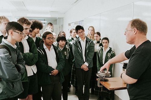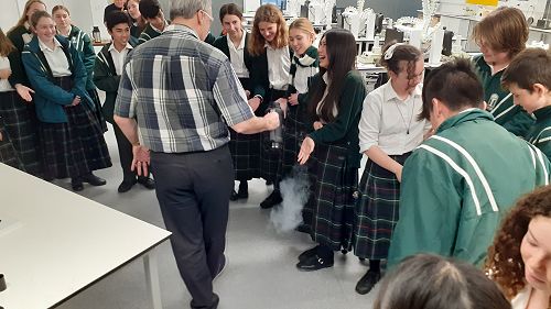 Our Year 11 Extension and Year 12 General Science students went to the University of Canterbury as part of their study of Radioactivity and Models of the atom. For half of the day they conducted experiments looking at the activity of different radioactive sources and half-life. The other half of the day was spent interacting with resources from Rutherford’s Den around the history of the atom. They also got to role play Ernest Rutherford's famous "Gold foil" experiment. The University staff also put on a great show with various physics demonstrations such as levitating magnets using liquid nitrogen, van der Graaf, bed of nails and hovercraft (all very useful for later topics) before getting a tour of the Physical Sciences departments to look at applications of Physics/Science. This included a visit to the new laser lab, to learn about current research in this area.