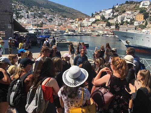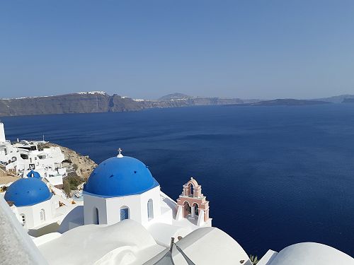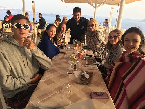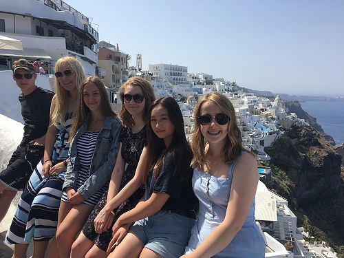After ten days in Italy, we took a plane from Rome to Athens. From there, we travelled by bus to the classical cities of Delphi (where ancient people went to find out about their future) and Olympia (where the Olympic Games were held). We loved our time in Delphi, including swimming and dancing till the early hours of the morning. The following morning we boarded a day cruise to travel around the picturesque islands of Hydra, Poros, and Aegina, then prepared to depart for Santorini the next day.