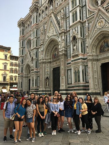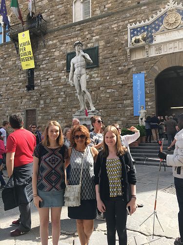 From Venice we travelled in our own coach through Bologna to FLORENCE where we visited the famous Uffizi art gallery and saw the famous Birth of Venus painting as well as a number of Leonardo Da Vinci pieces. Later, we ventured around the Duomo and nearby streets, completed some essential shopping, and went on a walking tour with Mrs. Fernandez where we learned the history of the sculptures in the Piazza della Signoria, as well as the Ponte Vecchio.