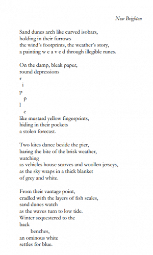 E Wen Wong gain success in two poetry competitions. One was the Guernsey International Poetry Competition also known as 'Poems on the Move' which was part of the annual Guernsey Literary Festival held in May. As a result, her poem will be displayed on one of 21 Guernsey buses, as well as in a second, larger display, first at Guernsey Airport, then all over the island. Continuing in the same mode, E Wen also entered the Christchurch Metro’s Poems on Buses competition with her poem: New Brighton (see below) for which she gained second place. You may get to see her work on the walls around Christchurch as well.