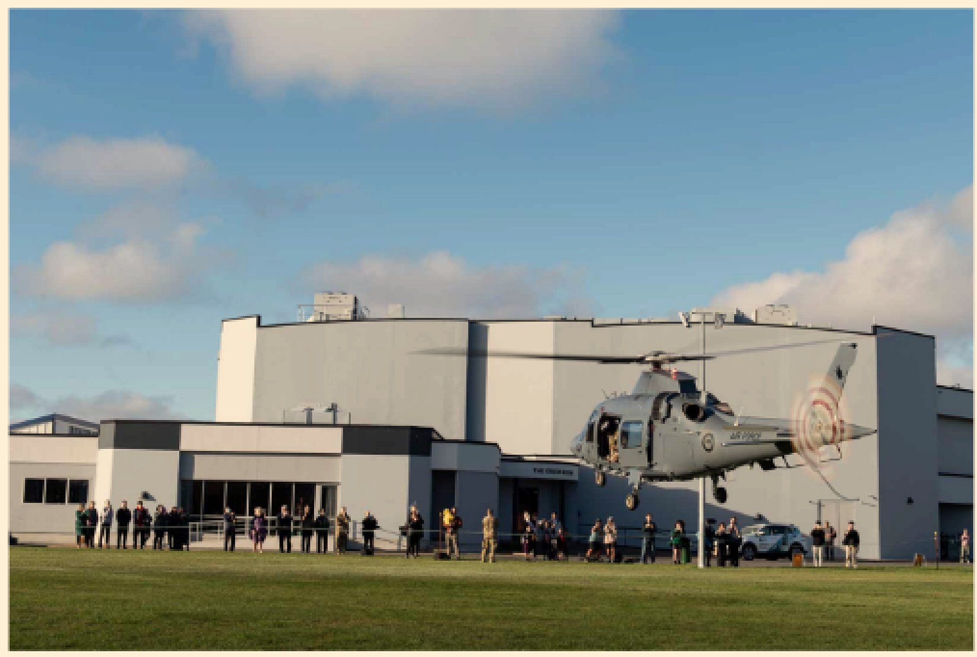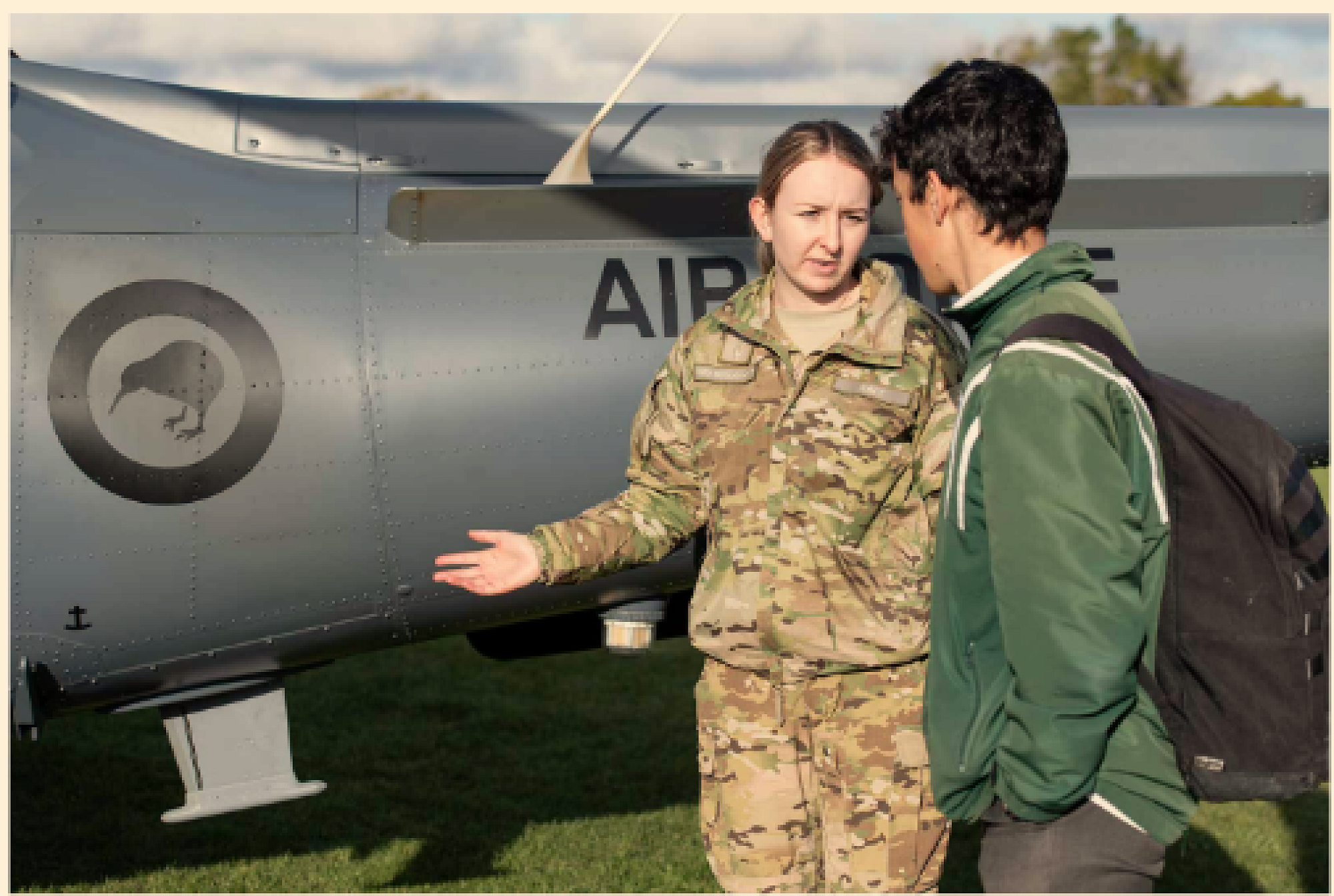 Members of the NZ defence force arrived at Burnside to greet students as they gathered to view the landing of an Air Force A109 Helicopter on the school field.
