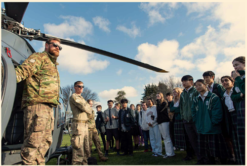 Burnside High School students were lucky to experience a NZ defence force helicopter landing at school this term.