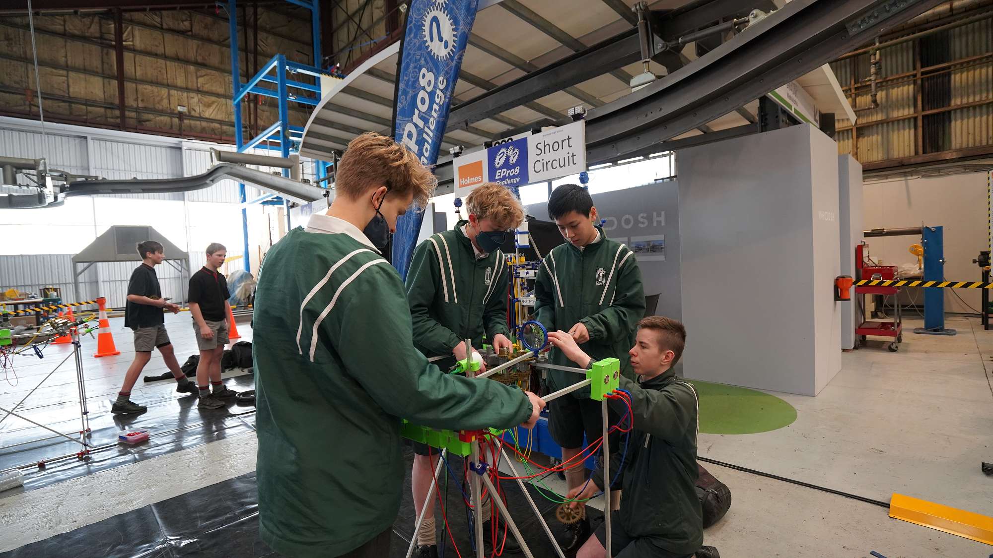 After months of training, Short Circuit faced other school teams in one of four qualifying rounds. They surprised themselves with a second place finish as the competition was stiff. The grand final was held at Holmes Solutions, an engineering workshop, where teams were shown around some incredible ongoing projects before heading to their workstations.