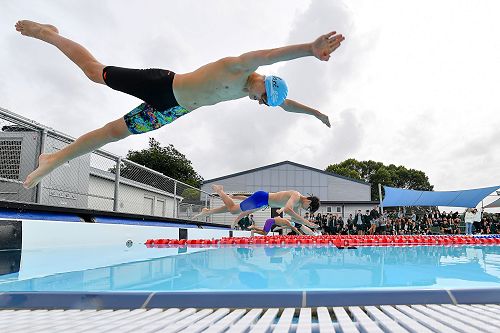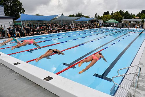 Post covid and we were back in our refurbished and heated swimming pool - effectively a new and heated pool with FIFA approved lane ropes and sun shade surround. This new and improved facility was well used on our sports day with year 9/10 competing in the first two periods and years 11-13 periods 3 and 4. Relays were held for the entire school after lunch. Officiated by our most able Physical Education and Sports Departments. Races in Breaststroke, Backstroke, Butterfly and Freestyle were held for each year level with championship points awarded to the finalists in each stroke. There is a school cup awarded to our year level winners during school prizegiving at the end of the year.