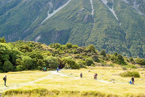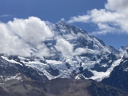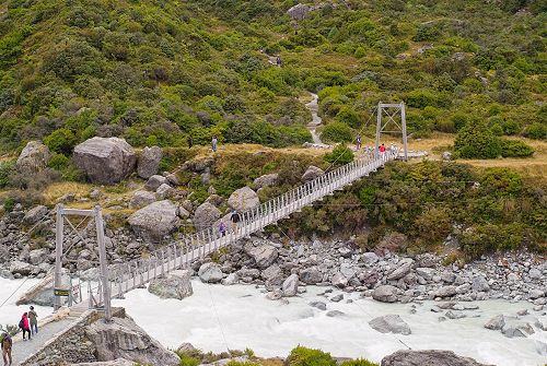 Then it was time to stretch our legs! We set off to walk the Hooker Valley track. This is one of the most popular walks in the park and is a three-hour return trip from the White Horse Hill campground. Along the way, we passed the original location of the Hermitage Hotel, the Alpine Memorial and Freda's Rock, before coming to the viewing point of the Mueller Glacier and the first swing bridge. We crossed over the Hooker River and carried on further, spotting old moraine ridges and humps along the way. Proving just how popular this walk is; we met many international visitors walking the track.