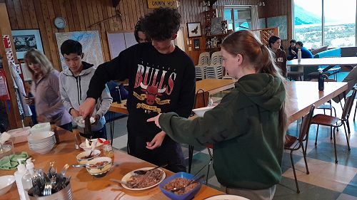 Many willing helpers loaded the bus in record time - enabling a very prompt departure from school! Our first short stop was at Geraldine followed by a very picturesque lunch-break at Lake Tekapo. Students certainly witnessed the resurgence of tourist numbers. The carpark, supermarket and cafes were notably busy compared to previous visits. Next, it was onward to our 'home away from home' - Unwin Lodge. The lodge is owned by the New Zealand Alpine Club and is located in Aoraki Mt Cook National Park - a handy 3km distance from the Aoraki Mt Cook Village.