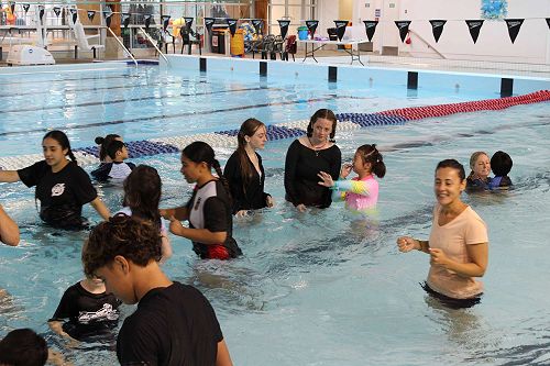 Year 12 Sports Leadership class support Pītau Allenvale students to have a great time at swim sports.