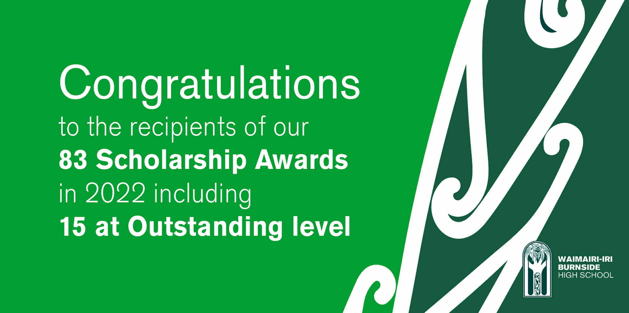 The 83 scholarships gained, 15 at an outstanding level, are not a reflection of the size of the school. They represent an outstanding achievement when compared with any school in New Zealand.
